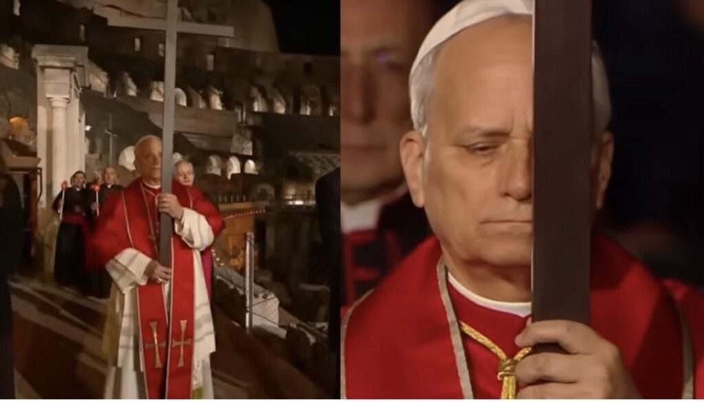 O Papa Leão XIV protagonizou um gesto incomum nas celebrações da Sexta-feira Santa ao carregar uma cruz de madeira durante todo o percurso da Via