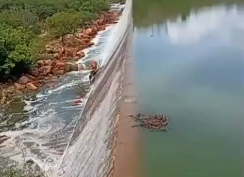 Nos primeiros minutos da tarde deste domingo (1°), a Barragem Dinamarca, localizada em Serra Negra do Norte, no Rio Grande do Norte, voltou a sangrar