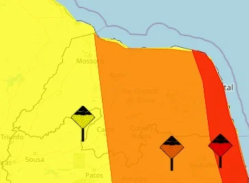 O Instituto Nacional de Meteorologia (Inmet) publicou três alertas de chuvas para cidades do Rio Grande do Norte nesta segunda-feira (6). Os avisos são de