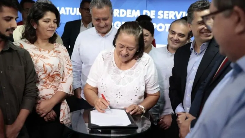 A governadora do Rio Grande do Norte, Fátima Bezerra, e o ministro-chefe da Casa Civil da Presidência da República, Rui Costa, assinaram nesta quinta-feira 6, no Centro Administrativo do Estado, a ordem de serviço para a construção da Adutora do Agreste Potiguar. A obra, orçada em R$ 448,5 milhões e inserida no Novo PAC, será executada pela Companhia de Desenvolvimento dos Vales do São Francisco e do Parnaíba (Codevasf).