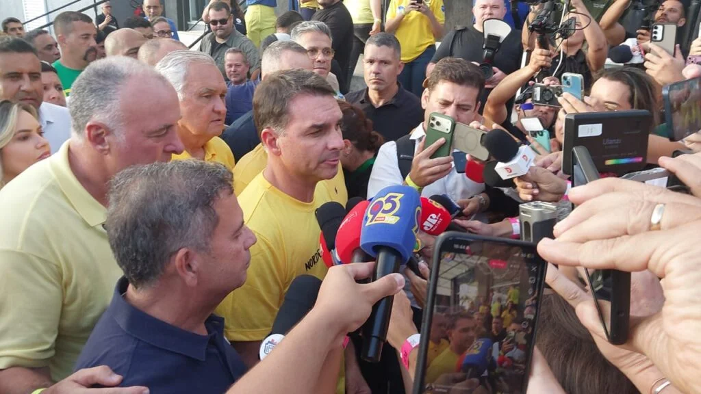 Em seu discurso, Flávio também criticou as medidas tomadas por Lula no enfrentamento ao crime organizado, lembrando que o líder petista não foi favorável ao classificar as facções como células terroristas. “Um governo que só se preocupa em taxar cada vez mais os trabalhadores para custear viagens e estadias em hotéis de luxo para a primeira-dama. Um governo que não ver problema um jovem roubar um celular para poder tomar uma cervejinha. Vocês tem o caminho para deixar bandido perigoso mofando na cadeia. Temos esse caminho para oferecer a vocês e não em favorecer marginais”.