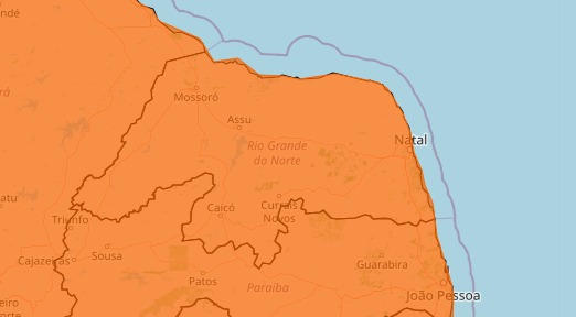 O Instituto Nacional de Meteorologia (Inmet) publicou um alerta de chuvas intensas para todas as cidades do Rio Grande do Norte nesta terça-feira (7). O aviso é de “perigo”, grau de severidade intermediário do Inmet, e é válido das 9h até as 23h59.
