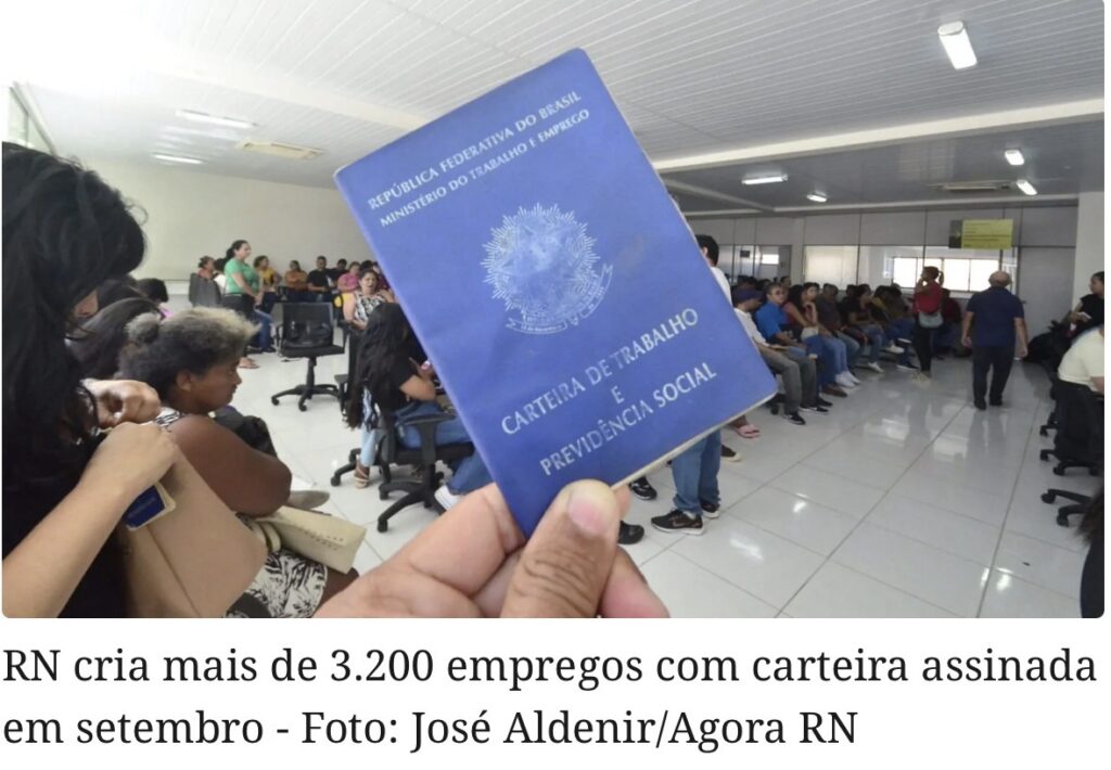 O Rio Grande do Norte encerrou o mês de setembro de 2025 com saldo positivo de 3.231 empregos com carteira assinada, segundo dados divulgados nesta quinta-feira 30 pelo Novo Caged (Cadastro Geral de Empregados e Desempregados), do Ministério do Trabalho e Emprego.